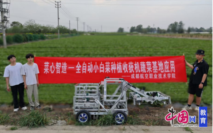 近日,正在彭州市九尺镇连片的小白菜种植里,跟着机械臂精准抓取、双层种植网有序分手,由成都航空职业手艺学院(简称:成都航院)学生团队自从研发的“菜制”全从动种植收成一体机成功完成初次实地测试——银灰色的一体机沿着尺度化田垄匀速行进,机械前臂以毫米级精度将承载着成熟小白菜的种植网全体“揭起”,并同步完成切割、收集、整地等多道工序。现场数据显示,该设备采见效率达人工的8倍以上,且连结98%的植株完整率。