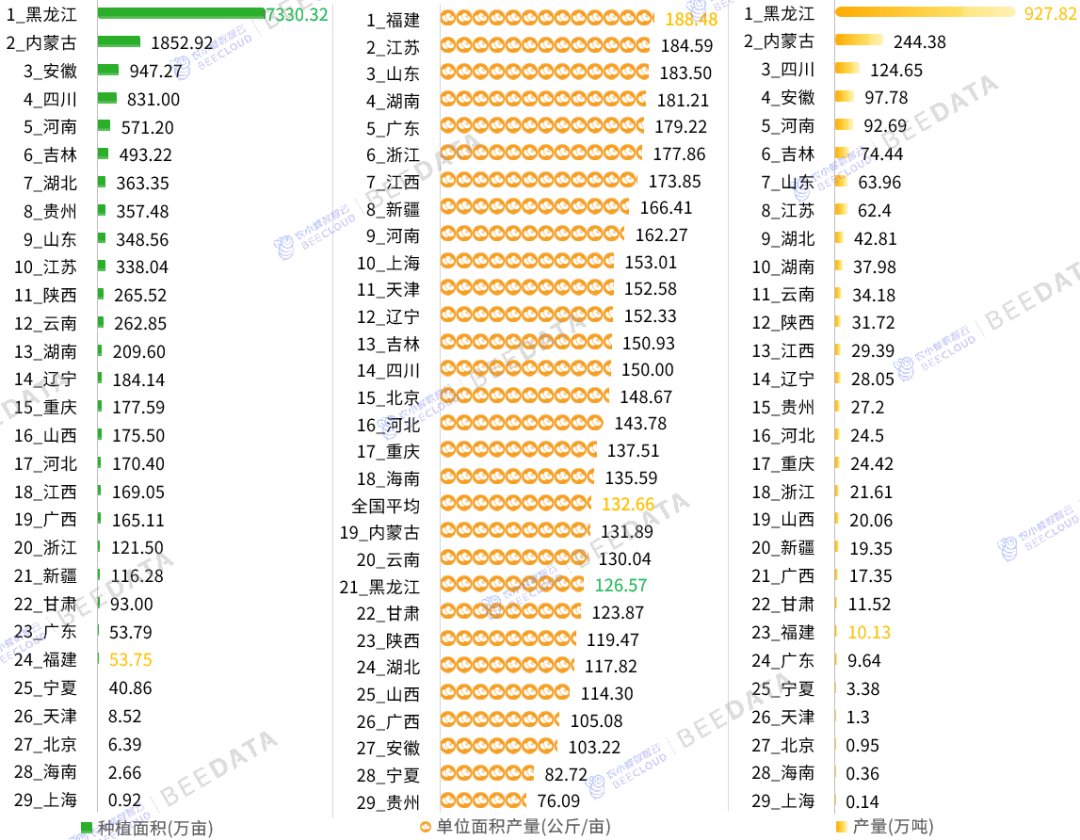 “”是全国最大的大豆出产省域,面积取产量均常年居全国首位。2023年,大豆种植面积达7330。32万亩、产量达927。82万吨——别离占全国总出产规模的46。66%、44。52%。